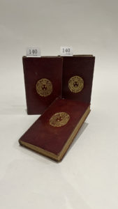 [RELIURE AUX ARMES]. Imitation de Jesus-Christ […] traduite & revûë par M. L. DU FRESNOI. Avec l’Ordinaire de la Sainte Messe. A Anvers, & se vend A Paris, Chez Pierre Gandouin, Libraire, 1731. 3 volumes in-16, maroquin rouge, armoiries...