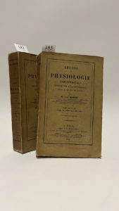 BERNARD (Claude). Leçons de physiologie expérimentale appliquée a la médecine, faites au Collège de France. A Paris, Chez J.-B. Baillière, Libraire, Londres, New York & Madrid, 1855-1856. 2 volumes in-8°, brochés, non coupés. Tome I : Cours...