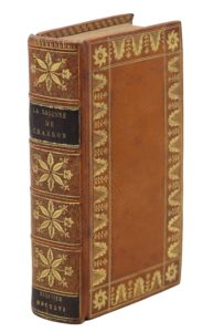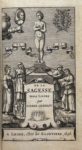 Leyde, Abraham et Bonaventure Elzevier, 1646 ; in-16 de [12] ff., 663 pp., [8] pp., reliure du premier tiers du XIXe siècle maroquin citron, filets dorés et roulette encadrant les plats, dos à nerfs orné à mille points, pièces noires, doublures de moire bleu ciel, roulettes intérieures, tranches dorées. Première édition donnée par les Elzevier, « incontestablement la plus belle » (Willems). Prédicateur de Marguerite de Navarre et ami de Montaigne, Pierre Charron prônait la séparation de la morale et de la religion, et l’ouvrage fut mis à l’Index en 1605. Le frontispice allégorique dessiné sur les indications de Charron représente la Sagesse enchaînée, dominant l’Opinion, la Passion, la Superstition et la Science.
