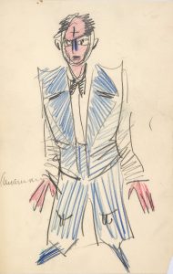 Saint-Exupéry (Antoine de). Autoportrait. Dessin original signé, aux crayons noir, bleu et rouge, s.d., une page in-8 (21 x 13,5 cm), sous chemise demi-maroquin moderne. BEL AUTOPORTRAIT, ESQUISSÉ À GRANDS COUPS DE CRAYON. L'aviateur et écrivain...