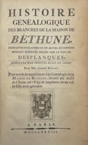 DOUAY Abbé — Histoire généalogique des branches de la maison de Béthune (…). Pour servir de supplément à la généalogie de la Maison de Béthune, dressée par André Du Chesne, en 1639.