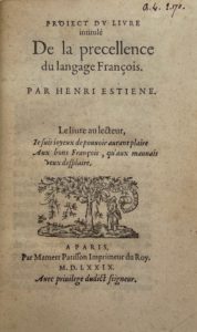 ESTIENNE Henri — Project du livre intitulé De la précellence du langage François.