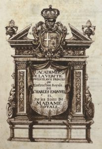 GIUGLARIS Luigi — L'Académie de la vérité, ouverte aux princes, au subjet de la royale éducation du Sérénissime Charles-Emanuel II, duc de Savoye, prince de Piémont, Roy de Cipre : receue de Madame Roiale Chrestienne de France sa mère.