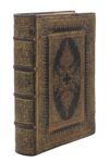Manuscrit sans lieu ni nom, 1652 ; in-4 de [328] ff. couverts d'une écriture soigneusement calligraphiée, reliure de l’époque maroquin noir, dos à nerfs muet orné de caissons richement décorés, large bordure de filets et roulettes dorés sur les plats, double rectangle central à motif losangé rayonnant de rinceaux, tranches dorées. Manuscrit de présent, offert par le traducteur, François Favier, à Christine de France.