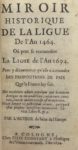 Miroir historique de la ligue l'an 1464 où peut se reconnaître la ligue de l'an 1694. Pour y découvrir ce qu'elle a à craindre des propositions de paix que la France luy fait, par l'auteur du Salut de l'Europe. 58 pp.
