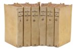 Amsterdam, Jacques le Jeune [Elzevier], 1679-1684 ; 6 vol. in-12, vélin moderne à rabats, dos lisses avec titre et tomaison à l’encre, tranches mouchetées. Édition elzevirienne rare, parue sous pseudonyme, la deuxième illustrée. Tous les titres généraux sont datés 1679 sauf le dernier, qui porte la date de 1684 et le titre Œuvres posthumes. On trouve en tout 29 pièces à paginations propres, certaines datées postérieurement à 1679, (plus L’Ombre de Molière) ornées de 29 figures et 2 frontispices généraux au premier et dernier volume.