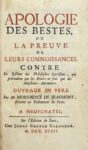 MORFOUACE DE BEAUMONT Gilles — Apologie des Bestes, ou la Preuve de leurs connoissances, contre le système des philosophes cartésiens....