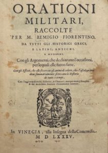 [NANNINI Remigio] — Orationi militari, raccolte per M. Remigio Fiorentino, da tutti gli historici Greci, e Latini ; antichi e moderni (...).