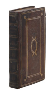 Paris, Veuve Gabriel Buon, 1597 ; 2 parties en un vol. in-12, maroquin ancien brun, décor doré à la Duseuil sur les plats et médaillon central, dos d’une autre provenance superposé, tranches dorées. Tomes IX et X de l’édition collective des œuvres de Ronsard publiées par la veuve de Gabriel Buon.