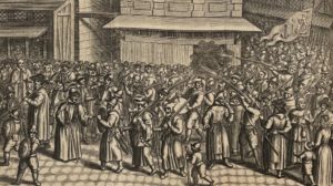 Trois curieuses planches, dont une dépliante, la procession de la Ligue. Bon exemplaire, dos un peu foncé.
