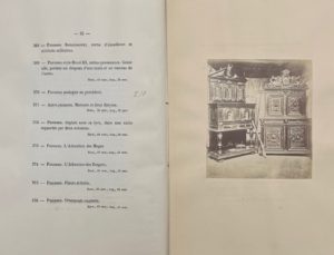 Paris, 1880 ; in-8 broché contenu dans un portefeuille à lacets. Rare catalogue d’une extraordinaire collection dispersée à Drouot par Me Charles Pillet, Charles Mannheim expert. Il vaut particulièrement pour les 20 photographies argentiques contrecollées qu’il renferme. Certains prix d’adjudication notés.
