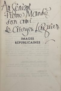 Un des 10 exemplaires de tête imprimés sur papier vergé de Rives. Il porte un envoi « au général Pierre Manhès, son ami le citoyen Larguier ». Contrairement à Léo Larguier, Pierre Manhès avait une pensée plutôt maurassienne.