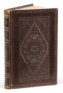 55 pages en un volume petit in-8. Maroquin brun, dos et plats ornés à froid, tranches dorées (Reliure de l’époque).