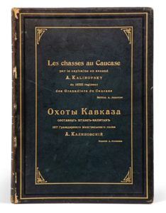 Important livre de chasse russe, destiné à promouvoir la région du Caucase lors de l'Exposition universelle de Paris en 1900.
