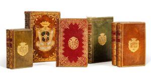 [HENRIQUEZ, Jean]. Abrégé chronologique de l’histoire de Lorraine. Paris, Moutard, 1775. 2 volumes in-12. Maroquin brun, filets dorés en encadrement, armes dorées, dos à nerfs orné, tranches dorées (Reliure de l’époque).