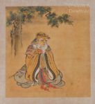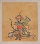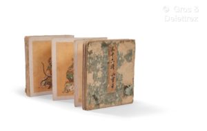 JAPON - XIXe siècle D'après KANO SANSETTSU (15489-1651) Sanjurokassen shyo Trente-six généraux chinois célèbres : Jiang Ziya, Yue Yi, Bai Qi, Zhang Liang, Zhou Yafu, Zhuge liang, etc. 36 portraits à l'encre et couleurs sur soie. Monté en un album accordéon complet. (Rousseurs, trous de ver, certaines feuilles détachées, pliures, couverture abîmée). Dim. 19,6 x 18,6 cm.