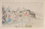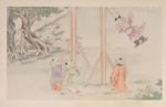 CHINE - XIXe siècle Album comprenant seize peintures, encre et couleurs sur papier, représentant des enfants jouant dans des jardins au fil des saisons. Signature apocryphe de HUA Yan (1682-1756). Dim. peinture: 30,5 x 51 cm. Reliure européenne à coins en cuir embossé d'insectes et papillons, escargots et grenouilles, papier au décor chinois. Ex-libris du Prince Constantin RADZIWILL (1850-1920). (Taches).