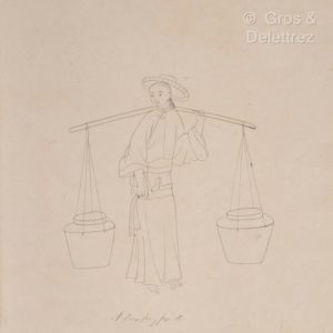[Dessin]. CHINE - Vers 1900 Album de dessins à l'encre sur papier, représentant des personnes de …