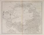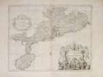 ANVILLE (Jean-Baptiste d’). Nouvel atlas de la Chine, de la Tartarie chinoise et du Tibet... A La Haye, chez H. Scheurleer, 1737. Grand in-folio, [1] f. (titre), 10 p., 42 cartes, veau fauve marbré glacé de l'époque, dos à 7 nerfs, pièce de titre bordeaux, caissons décorés de petits fers dorés, triple filet à froid encadrant les plats, roulette dorée sur les coupes, tranches rouges (lég. frott. sur les plats, et coupes, petits accrocs sur le plat inf., restauration discrète en marge d’une carte, lég. rousseurs marg.). Bel exemplaire du premier atlas de la Chine publié par un cartographe français, et le deuxième consacré à cette zone géographique après celui donné par Blaeu vers 1655 qui proposait 18 cartes. Il se compose de 42 cartes gravées sur cuivre. La plupart des cartes sont ornées de cartouches de titre décoratifs illustrant diverss lieux et scènes chinois. La carte de la Chine, de la Tartarie chinoise et du Tibet est ornée d'un beau cartouche de titre qui met en scène l’empereur de Chine. Cet atlas renferme également une importante carte des pays traversés par le capitaine Bering depuis la ville de Tobolsk jusqu'au Kamtchatka, et une carte du Royaume de Corée, aisnsi que des cartes détaillées de provinces chinoises, telles que Quang-Si, Quang-Tong, Se-Tchuen, Chen-Si. (Koeman, Anv. 1 ; Cordier, Bibl. sinica 48).