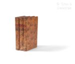 BELL (John). Voyages depuis St. Petersbourg en Russie, dans diverses contrées de l'Asie ; à Pékin... à Ispahan, en Perse à Constantinople... On y a joint une description de la Sibérie Par Jean Bell d’Antermony A Paris, chez Robin, 1766. 3 volumes in-12, veau havane marbré époque, dos lisse orné, 2 pièces de titre rouge et une marron, tomaison dorée, tranches rouges, des coiffes restaurées (qq. frottements ; lég. bruniss., trav. de vers dans les marges de pied du tome 3). Première édition en français de ce récit du médecin écossais John Bell (1691-1780), qui voyagea vers la Perse dès 1714 en compagnie d’un ambassadeur russe ; par la suite, il remplit plusieurs missions à la demande du gouvernement russe, qui le conduisirent en Chine, en Perse et enfin à Constantinople en 1737. Illustré d’une grande carte dépliante gravée sur cuivre (petite déch. ordinaire recollée) montrant l’itinéraire suivi de Moscou à Pékin. La seconde partie du tome 2 renferme : « Journal de la résidence de M. [Lorenz] Lange, agent de Sa Majesté impériale de toutes les Russies, Pierre Ier, à la cour de Pékin, en 1721 et 1722, contenant ses négociations ». (Cordier Bibl. sinica 2093-94).
