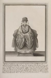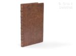 BOUVET (Joachim). L'estat present de la Chine en figures dédié à Monseigneur le Duc & à Madame la Duchesse de Bourgogne. A Paris, chez P. Giffart, 1697. In-folio, [2] f. (titre, dédicace), 4 p. (Avertissement; Idée du gouvernement de la Chine), pl., veau havane moucheté de l'époque, dos à 6 nerfs et muets, caissons ornés, tranches jaspées, habiles restaurations (leg. frott. sur les coupes, titre un peu sali et remonté, marge d’un f. limin. remplacée, déch. marg. sur 2 pl., très rare rousseurs, portrait en déficit). Rare édition originale de cet important recueil montrant d’importants personnages chinois dans leurs costumes originaux. Elle se compose de 43 planches gravées par Pierre Giffart (1643-1723), d’après les dessins rapportés de Chine par le missionnaire jésuite J. Bouvet (1656-1730). Sans le portrait du duc de Bourgogne ; ni celui de la duchesse, qui ne se trouve dans de très rares exemplaires (cf. BM de Lyon), mais pas dans celui de la BnF relié en maroquin qui renferme 2 suites, l’une en noir et l’autre coloriée ; ce portrait n’est pas non plus signalé par Cordier. Intéressant exemplaire enrichi de 14 planches de portraits en pied, importantes et peu communes, gravées sur cuivre et publiées fin XVIIe - début XVIIIe s. par Nolin, Mariette, Langlois et Bonnart : 1- Confucius (Langlois). 2- Lao Kun (Nolin). 3- Xe Kiam (Nolin). 4- Kam Hi (Langlois). 5- Cam-Hi, empereur de la Chine et de la Tartarie Orientale (Mariette). 6- Dame chinoise (Langlois). 7- Bourgeoise de la Chine (Bonnart). 8- Dame Chinoise dans sa chambre (Bonnart). 9- Madame Hiu, petite fille du Docteur Paul Siu Grand Chancelier & premier ministre de l’Empire (Langlois). 10- Le R.P. Jacques le Faure, jésuite (Nolin). 11- Le docteur Siu Colao (Nolin). 12-Le P. Mathieu Ricci, jésuite (Langlois). 13- Le P. Jean Adam Schall, jésuite (Nolin). 14- Chin Fo Cum (Nolin ; biffé pour Langlois). (Brunet I, 1189; Colas 417; Sommervogel, II, col. 55; Cordier III, 1858).