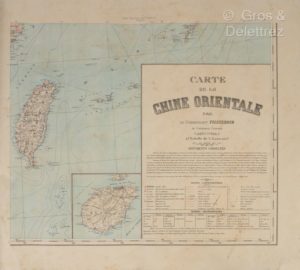[Carte géographique]. [Chine]. FRIQUENON (Jean-Baptiste). Carte de la Chine Orientale. [Vietnam], Service géographique de l'Indo-Chine, juillet 1908. 1 vol. grand in-folio, 9 f., monté sur toile, broché (rousseurs, petit manque marginal sur qq. f.).