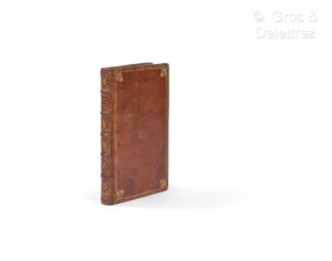 FEYNES (Henry de). Voyage faict par terre depuis Paris Jusques a la Chine. Par le S.r de Feynes gentilhomme de la maison du Roy, et ayde de Mareschal de Camp de ses armées. Avec son retour par mer. A Paris, chez P. Rocolet, 1630. In-8, [8] f., 212 p., fr., veau havane glacé époque, dos à 5 nerfs, titre doré, caissons ornés, plats décorés d’un triple filet doré en bordure et de fleurons angulaires, le tout doré, roulette dorée aux coupes et chasses, tranches dorées sur marbrure, dos, coiffes et coins restaurés (front. un peu rogné à droite avec déch. sans manque sur 1 cm., qq. salissures en marge, trou de rouille sur une lettre p.148). Très rare édition originale du premier récit d’un voyageur français en Extrême-Orient, Henry de Feynes (1575-1647). Une traduction anglaise faite d’après le manuscrit avait paru à Londres en 1615. Provenance : Silvain Lauran (sign. ancienne sur la p. de dédicace). (Cordier, Bibl. sinica, 2074).