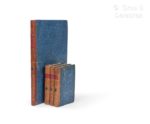 GUIGNES (Joseph de). Voyages à Péking, Manille et l'Ile de France, faits dans l'intervalle des années 1784 à 1801. A Paris, de l’Impr. impériale, se trouve à Paris, chez Treuttel & Würtz, 1808. 3 volumes in-8 + 1 atlas grand in-folio, demi-basane fauve époque, petits coins velin, dos lisse, pièce de titre cuir de Russie rouge, tomaison sur médaillon vert, roulettes dorées, tranches jaunes, 2 dos restaurés en tête, celui de l’atals renouvelé (menus frottements ; rouss. éparses très modérées, petite déch. marg. sur 2 planches (fig. 52-53 et avec manque fig. 42-43) de l’atlas et une grande déch. restaurée sur une carte dépl.). L’atlas renferme 64 pl. offrant 97 figures par Deguignes et Deseve ; et 6 cartes dont 4 dépliantes gravées sur cuivre par Dhoudan d’après l’auteur et M. de Malespina (une carte de Pékin sur 2 feuilles, Plan de la ville de Macao, carte de l’entrée de Macao (déch. restaurée), cartes des Philippines et Baie de Manille). Provenance : Bibl. des sous-officiers, quartier Ruquoy, à Tournai (cachet répété).