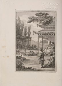 HELMAN (Isidore-Stanislas). Faits mémorables des empereurs de la Chine tirés des annales Chinoises. A Paris, chez l’auteur, 1788. In-4 (31 x 21,5 cm), [2] f. (titre, dédicace à Madame), 24 planches, chacune accompagnée d'un feuillet de commentaire non chiffré, demi-basane verte de l'époque, dos à 5 nerfs, titre et filet dorés (coiffes et coins légèrement usés, reliure frottée, petites épidermures). Agréable recueil illustrant d’importants épisodes de l’histoire chinoise, dédié à la comtesse de Provence, Louise-Marie-Adélaïde de Savoie, dont un portrait gravé d'après Elisabeth Vigée-Lebrun figure en tête de la dédicace gravée à ses armes. Fort du succès des premières livraisons de sa célèbre Suite réduite des conquêtes et batailles de la Chine, dont la publication s'échelonna de 1783 à 1788, Isidore-Stanislas Helman (1743-1806 ou 1809), graveur du duc de Chartres et qui se distingua comme l'un des meilleurs élèves de Le Bas, eut l'initiative de réaliser deux nouvelles suites dans un goût similaire. Ce furent l'Abrégé historique des principaux traits de la vie de Confucius et cette suite des Faits mémorables des empereurs de la Chine. La plupart des planches - si ce n'est toutes - ont été gravées d'après les dessins du missionnaire jésuite Jean-Denis Attiret (1702-1768), qui séjourna en Chine de 1737 à sa mort et fut proche de l'empereur. Annoncé au Journal de Paris dès le 16 mars 1788, les Faits mémorables furent proposés à la vente dès le 15 avril suivant, en 4 livraisons. (Inventaire du Fonds français, graveurs du XVIIIe siècle, T. XI, n° 111-134; Cohen, 479).