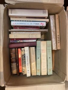 HISTOIRE. Ensemble de deux cartons comprenant environ 40 volumes portant notamment sur l'histoire de la bourgeoisie en France, la société anglaise, la presse, l'histoire des Antilles et de la Guyane, la Commune de Paris, l'Holocauste Accidents.