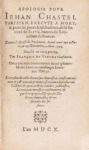 [BOUCHER. Jean]. Apologie pour Iehan Chastel Parisien, exécuté à mort, & pour les pères & …