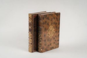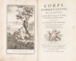 [BRETAGNE] - [ABEILLE]. Corps d'observations de la Société d'Agriculture, de Commerce et des Arts A Rennes. chez Jacques Vatar. 1760. et A Paris. chez la veuve de B. Brunet. 1772. 2 volumes in-8, basane brune, dos à nerfs orné (tome 1), basane fauve, dos à nerfs orné (tome 2), armes sur les plats. Aux armes accolées de France et de Bretagne. Frontispice et 2 planches. Reliure du tome 1 très restauré, dos refait, travail de ver n'affectant pas la lecture. Traces d'humidité à la fin du volume. Petit manque de cuir au dos et à la coiffe du tome 2, manque la pièce de titre. En l'état.