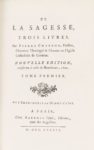 CHARRON. Pierre. De la Sagesse. Paris. Didot aîné, chez Barrois l'aîné. 1789. 3 volumes in-12, …