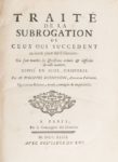 DERNUSSON. Philippe. Traité de la subrogation de ceux qui succèdent au lieu et place des …