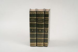 DUBROCA. Entretiens d'un père avec ses enfans, sur l'Histoire naturelle... Paris. Des Essarts. An 6 (1797). 5 tomes en 3 volumes in-12, demi-veau vert, dos lisses ornés. Edition originale ornée de 13 planches dépliantes, formant le tome 5. Ex-libris manuscrits marquise de Courtarvel et Kerguelen Veuve Larlan.