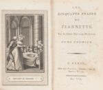 DUCRAY-DUMINIL. Les Cinquante francs de Jeannette. Paris. Le Prieur. an VII (1799). 2 volumes in-16, demi-basane, dos lisses ornés. Edition originale illustrée de deux frontispices gravés. Un mors supérieur fendu.