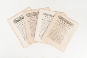 [FOIRES et MARCHÉS]. Réunion de 16 Arrêts et LeYres Patentes, 1777-1784. In-4, déreliés. …