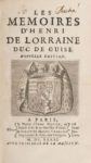GUISE. Henri II de Lorraine, duc de. Les Mémoires d'Henri de Lorraine, duc de Guise. Paris. veuve …