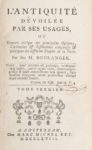[HOLBACH. baron d'.] - BOULANGER. L'Antiquité dévoilée par ses usages... Amsterdam. Michel Rey. 1768. 3 volumes in-12, veau tacheté de l'époque, dos lisse ornés, d'armes dorées en queue, pièces de titre et de tomaison fauve. Nouvelle édition. L'ouvrage est publié sous le pseudonyme de « feu M. Boulanger », qui servit à plusieurs reprises au baron d'Holbach. Pâles rousseurs. Signature à l'encre à toutes les pages de titre. Petits frottements aux reliures.