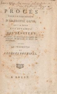 [JOUIN. Nicolas]. Procès pour la succession d'Ambroise Guys Brest. 1 volume in-12, en feuilles, cousu. L'opuscule ne forme qu'un extrait du titre principal, ne contenant que la préface et la partie concernant les Jésuites de Liège et de Bruxelles. Le procès Guys ne figure donc pas dans le volume.