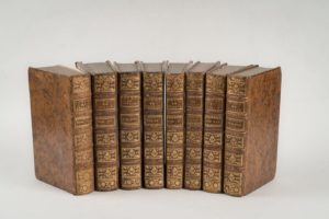[LALANDE]. Voyage d'un François en Italie, fait dans les années 1765 & 1766... Venise, et se trouve à Paris. Desaint. 1769. 8 volumes in-12, veau fauve marbré, dos à nerfs ornés. Accrocs à quelques coiffes. Edition originale. Sans l'atlas in-4 de 36 planches et cartes.