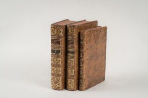 [MAHOMET]. L'Alcoran de Mahomet. Amsterdam et à Leipzig. Chez Arkstée & Merkus. 1775. 2 volumes in-12, veau fauve, dos à nerfs orné. Illustré d'un frontispice, 4 planches et une carte repliée. Traduit de l'arabe par André Du Ryer, Sieur de la Garde Malezais. Joint : PRIDEAU. La Vie de Mahomet, ou l'on découvre amplement la Vérité de l'imposture. A Amsterdam. Chez George Gallet. 1698. 1 volume in-12, veau fauve, dos lisse orné.