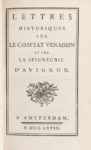 [MOREAU. Jacob-Nicolas]. Lettres historiques sur le Comtat Venaissin, et sur la seigneurie …