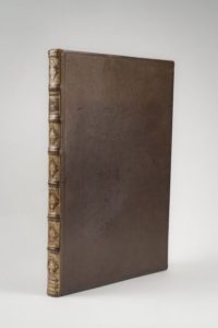 PALLADIO. Andrea. Les Quatre livres de l'architecture. A Paris. Edme Martin. 1650. 1 volume in-folio, veau marron moderne à l'imitation, dos à nerfs orné. Un des livres d'architecture les plus importants de l'Occident classique. Édition originale de la première traduction française des livres I à IV, par Roland Fréart de Chambray. Importante illustration gravée sur bois dans le texte : encadrement répété quatre fois (au titre général et aux titres particuliers), environ 220 compositions dans le texte dont 163 à pleine page. Bon exemplaire ; traces de mouillures marginales sur les premiers et derniers feuillets. Ex-libris manuscrit de l'architecte Charles-Henri Landon - 1815, élève de Percier.