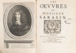 SARASIN. Jean-François. Les Oeuvres de Monsieur Sarasin. Paris. Courbé. 1656. 1 volume in-4, …