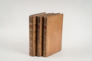 SAVARY. Lettres sur l'Égypte. Seconde édition revue & corrigée. Paris. Onfroi. 1786. 3 volumes in-8, veau brun, dos à nerfs. Illustré de 4 planches repliées. Quelques tâches sur les plats, petit manque au mors inférieur du tome 1, quelques épidermures.