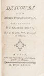 [SERVAN]. [Oeuvres]. Lyon. 1767-1774. 6 titres en 2 volumes in-12, basane fauve marbrée, dos à nerfs ornés. Des épidermures sur un plat supérieur, coins abîmés, mais bon exemplaire. Recueil réunissant six plaidoyers de l'avocat dauphinois Servan : 1. Discours d'un avocat général, dans la cause du comte de **, et de la Dlle ***, chanteuse de l'Opéra Lyon. Sulpice Grabit. 1772. Edition originale. 2. Discours de M. Servan (...) dans la cause d'une femme protestante. Genève, et se trouve à Grenoble. Grabit. 1767. Edition originale. 3. Discours sur l'administration de la justice criminelle Lyon. Grabit. 1774. 4. Discours de Mr S***, ancien avocat-général au Parlement de *** ; dans un procès sur une déclaration de grossesse. Lyon. Grabit. 1774. 5. Discours sur les moeurs, prononcé au Parlement de Grenoble, en 1769. Lyon. Joseph-Sulpice Grabit. 6. Mémoire pour la veuve Game. Lyon. Joseph-Sulpice Grabit. 1773.