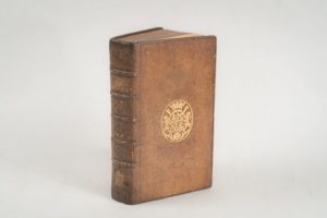 SMITH. William. Nouveau voyage de Guinée, contenant une description exacte des coûtumes, des manières, du terrain, du climat Paris. Durand, Pissot. 1751. 2 parties en 1 volume in-12, basane fauve marbrée, dos à nerfs orné de fleurons à froid, armes en pied, encadrement de simple filet à froid sur les plats, armes au centre. Coiffes et mors restaurés. Édition originale de la traduction française, illustrée de 5 planches zoologiques hors-texte. Aux armes de Gabriel-Jérôme de Bullion d'Esclimont, répértées sur le dos.