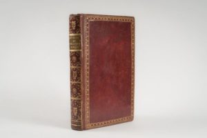 VITRUVE. De Architectura libri decem Lyon. Jean de Tournes. 1552. 1 volume Petit in-4, maroquin rouge XVIIIème, dentelle dorée en encadrement sur les plats, dos lisse orné, tranches dorées (reliure du XVIIIe siècle). Première édition de Vitruve imprimée en France, avec les annotations de Guillaume Philandrier. Illustré de bois gravés, dont une planche dépliante hors texte et 83 vignettes dont un portrait. Les principales figures, les quatre figures du Cirque, des marbres de Latran et de Modène, sont de la main de Bernard Salomon. Exemplaire réglé, portant de nombreuses annotations manuscrites anciennes dans les marges. Restauration de papier sur le titre. Les Epitome in omnes Georgii Agricolae (qui manquent) ont été soigneusement retranscrits et parfaitement calligraphiés au moment de la reliure sur 8 feuillets reliés à la fin.