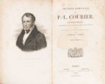 COURIER. Paul-Louis. OEuvres complètes Paris. Paulin, Perrotin. 1834. 4 volumes in-8, demi-basane verte, dos lisse orné. Nouvelle édition en partie originale publiée en 28 livraisons du 24 mai 1834 au 15 novembre 1834, illustrée d'un portrait-frontispice, et un fac-similé. Rousseurs.
